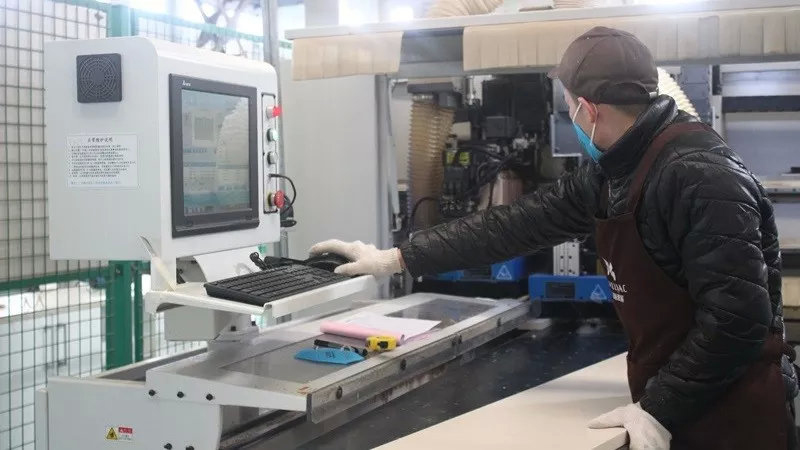 柜子經(jīng)過拆單的數(shù)據(jù)會通過電腦傳輸?shù)缴a(chǎn)的機器上,工人只需要根據(jù)電腦屏幕上的提示放入相應(yīng)的板材和數(shù)量,全程機器自動完成板材切割工作,高效快捷。