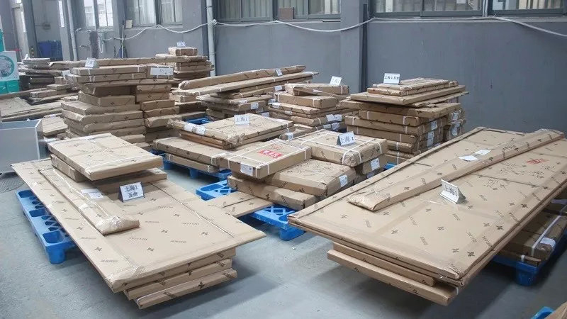 在包裝前板材還要再經(jīng)歷一次清潔,再包上硬板紙,最后用自動包裝機綁上封帶便可以存儲至倉庫,快速方便高效不傷材料。